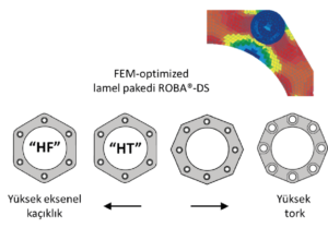 Ayrıca sonlu elemanlar yöntemi ile dizayn edilen lamel yapısı yüksek rijitlik ve uzun kullanımda minimum aşınmayı sağlar. Farklı uygulamalar için farklı lamel yapılarıyla yüksek tork (110.000Nm’ye kadar) veya yüksek eksenel kaçıklık sönümleme imkanı sağlar. Bu farklı lamel yapıları, lamel adeti, sertliği/yumuşaklığı veya bağlantı metodundaki değişimler ile sağlanmaktadır.