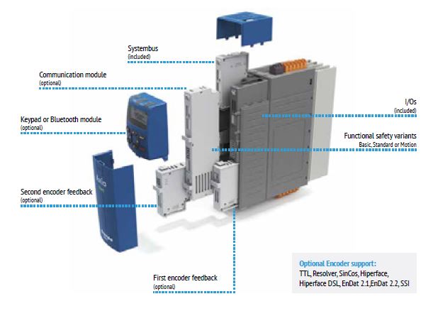 Ek olarak, AxiaVert serisi, çok çeşitli motorlarla (asenkron, sabit mıknatıslı senkron, senkron relüktans) yüksek uyumluluk ve sürücüyü, birçok farklı uygulama için ideal hale getiren güvenilir yerleşik hareket ve kontrol özelliklerini seçme imkânı sayesinde büyük prosesler için uygundur. AxiaVert, standartların çok ötesine geçerek en talepkâr müşterilerin gereksinimlerine göre uyarlanmış doğru çözümleri sunar.