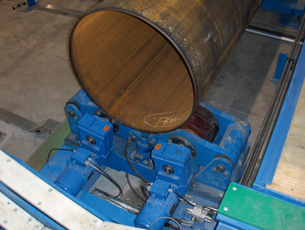 Döndürme aparatları için frenli motorlu redüktörler uygulanmaktadır. Bu, spiral boruların hassas ve adım adım kalite kontrolünü sağlar. Borular gözle veya röntgen kontrolü ile incelenir.